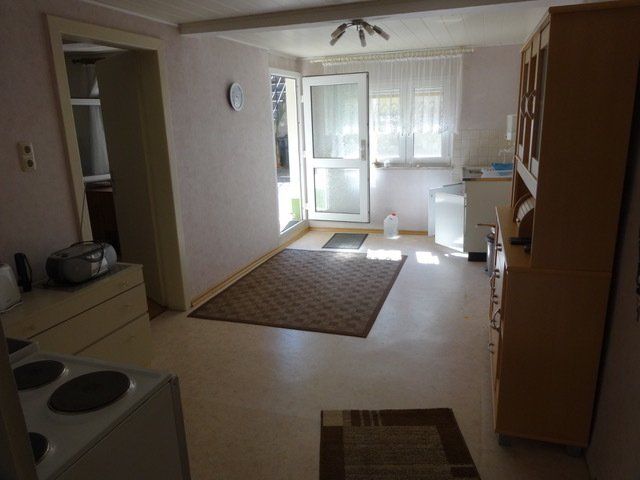 Durch die Küche gelangen Sie in den 9 qm großen Hinterhof auf diesen befindet sich ein kleines Gartenhaus sowie eine Treppe zur Straße und der dort angrenzenden 60 m² Grünfläche inkl. Garage und Hühnerstall.